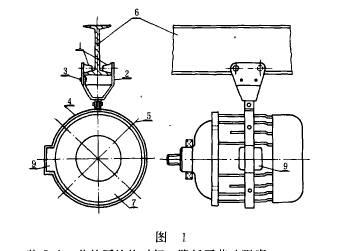 為了便于檢修電動(dòng)葫蘆,我們設(shè)計(jì)并制造了一個(gè)專用的小滑車。它的四只斜面滑輪1固定在輪框2上;輪框有一面做成活動(dòng)的。便于掛在工字鋼6上,然后用緊固螺栓3旋緊。吊圈4按電機(jī)7的外殼直徑放大30毫米左右,與輪框用螺栓聯(lián)接起來。吊圈的一側(cè)留出電機(jī)接線盒9的位置。在吊圈上均布四顆電機(jī)支撐螺栓5,以便旋緊后將電機(jī)支撐和穩(wěn)定在吊圈上,并保持電機(jī)中心和電動(dòng)葫蘆的中心在同一水平線上。