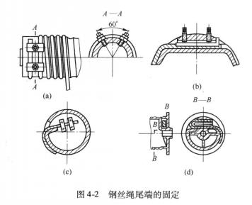 鋼絲繩尾端的固定方式:鋼絲繩在卷筒上的固定是利用壓板或楔塊將鋼絲繩壓在卷筒壁上。鋼絲繩的固定應安全科考且便于檢查和更換。