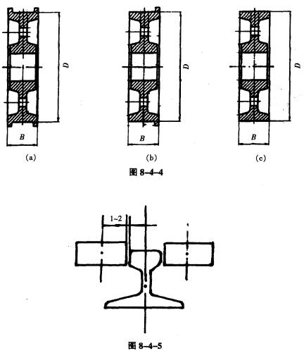 ①按葫蘆式起重機分,單或雙梁懸掛起重機或多支點懸掛起重機的車輪為懸掛形車輪,結(jié)構(gòu)形式同圖8-4-1所示,為借用葫蘆運行車輪。電動單梁起重機和電動葫蘆橋式與門式起重機運行車輪為支承形車輪,如圖8-4-4所示。